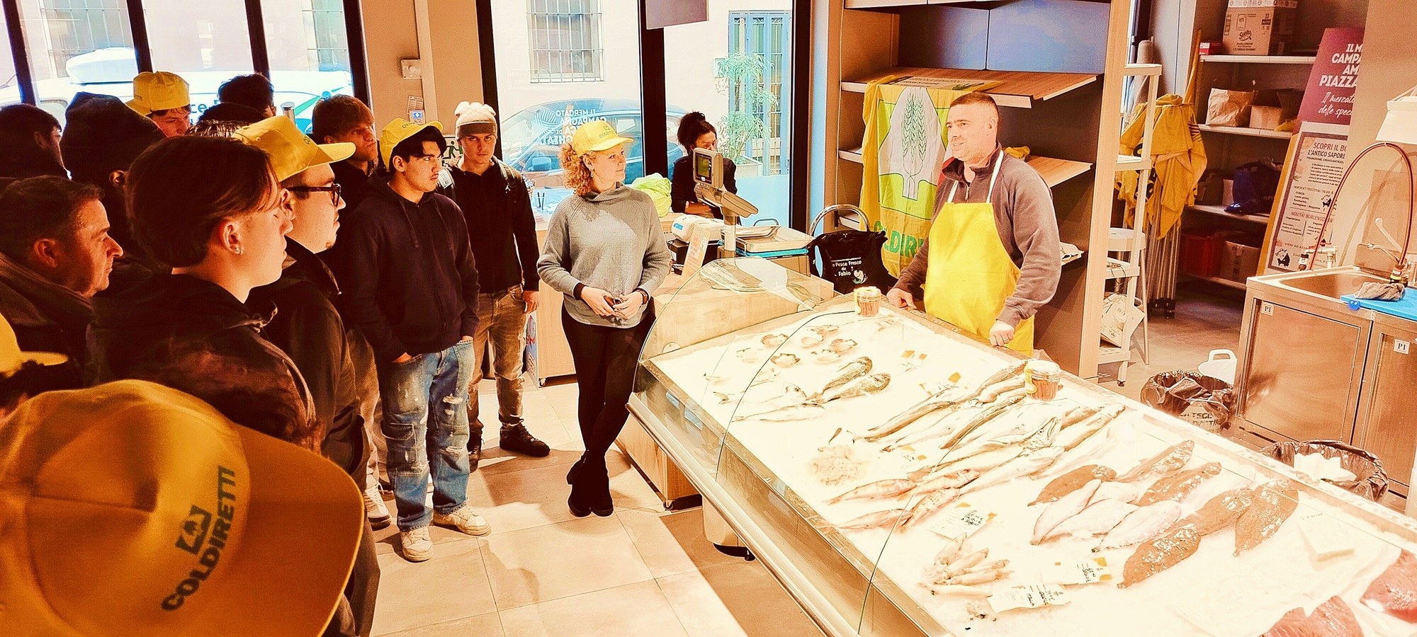 La prima tappa è stata all’Azienda Agricola Bertinelli, con attenzione al Parmigiano Reggiano. La classe ha chiesto informazioni su stagionatura, controlli e fasi di lavorazione, parlando anche del Parmigiano da Vacche Rosse e delle differenze tra stagionature. Nel settore del Consorzio Agrario di Parma l’attenzione si è spostata sul supporto alla produzione locale e su cosa significa, in concreto, filiera corta tra selezione, forniture e distribuzione. Al banco di “Solo pesce fresco da Fabio” la classe ha affrontato il tema della freschezza e della gestione corretta della conservazione, ragionando sul fatto che la distanza, da sola, non definisce qualità e che diventano decisivi tempi di arrivo e informazioni disponibili al consumatore. Con “La Fattoria Villa & Le Capre di Jacopo” il confronto ha riguardato i formaggi caprini e i derivati, con attenzione a lavorazione del latte, tipologie, conservazione e lettura delle indicazioni in etichetta. La visita si è chiusa al banco dell’Azienda Agricola Spigaroli, dove salumi e prodotti di stagione hanno permesso di collegare trasformazione e stagionatura ai ritmi dell’agricoltura e alla disponibilità legata al periodo dell’anno.